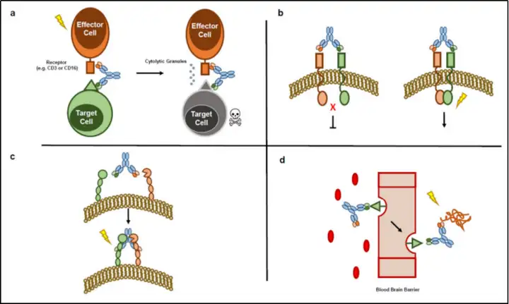 图2. BsAb作用机制示意图(doi: 10.3390/ijms22105350.)