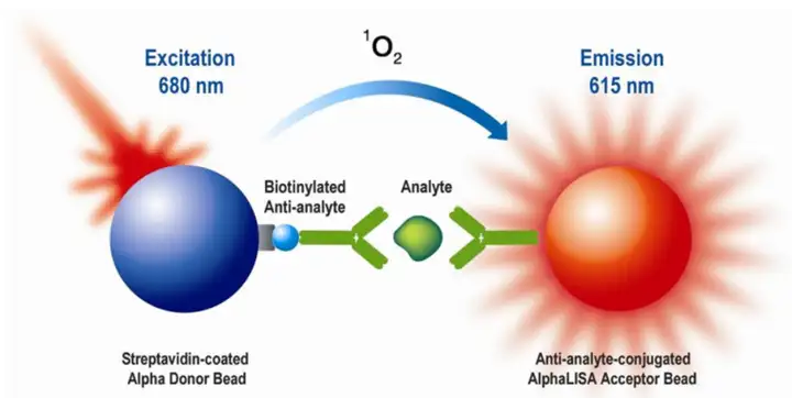 通过荧光共振能量转移原理,只有当两种特异性抗体都结合目标蛋白而靠近时,才会产生特定信号。其“时间分辨”特性有效过滤背景荧光,实现高信噪比的检测需求。