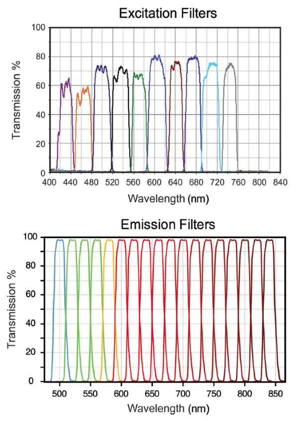 窄带激发光和发射光滤光片,光谱扫描范围从紫外到近红外波段