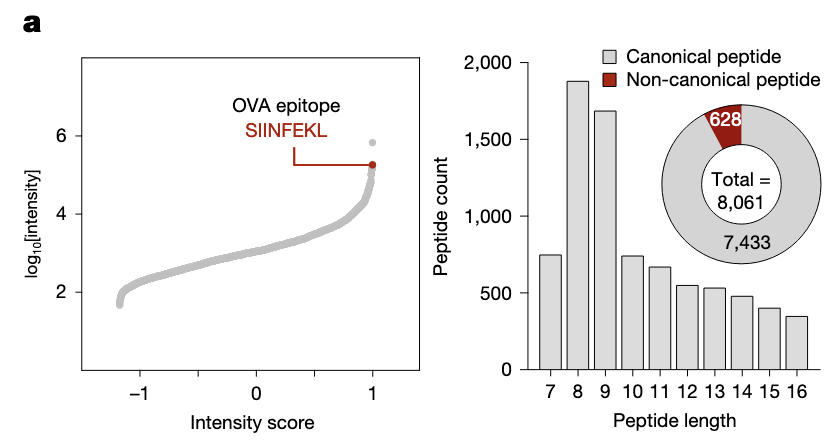 免疫肽组分析显示OVA肽与MHC-I结合。