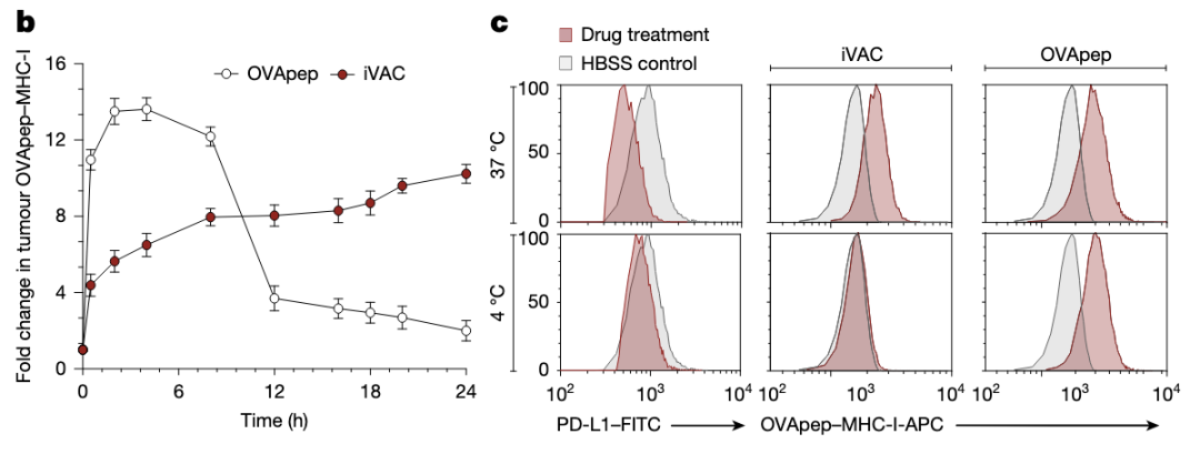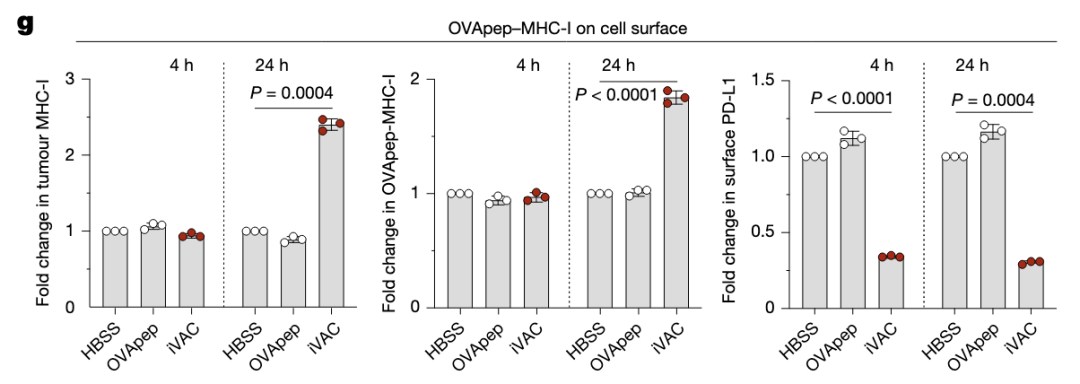 iVAC处理细胞后,细胞表面PD-L1下调,OVA肽提呈增加。
