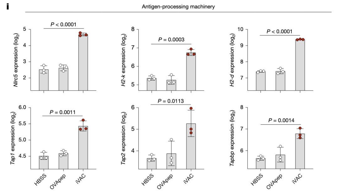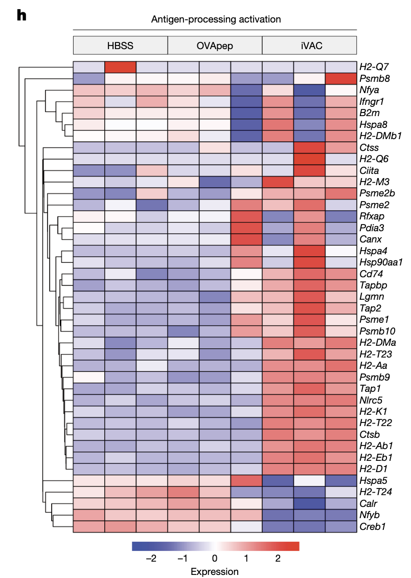 RNAseq显示iVAC组抗原提呈基因上调,肿瘤发生基因下调。
