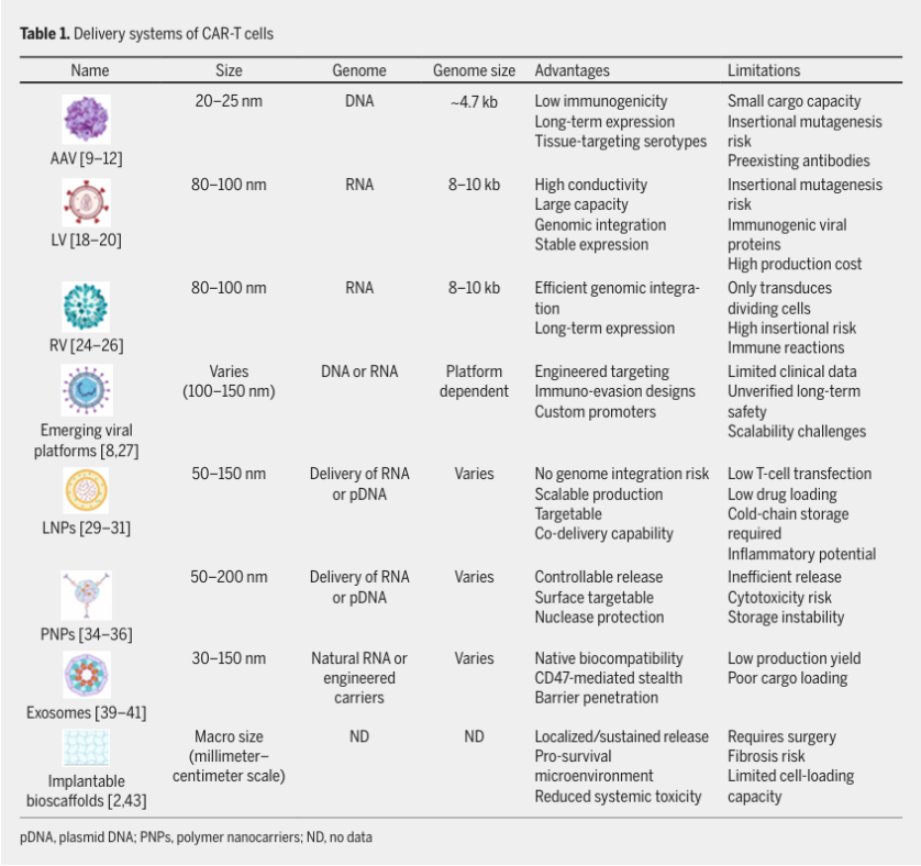 (2)多元化递送系统:体内CAR-T的核心引擎
