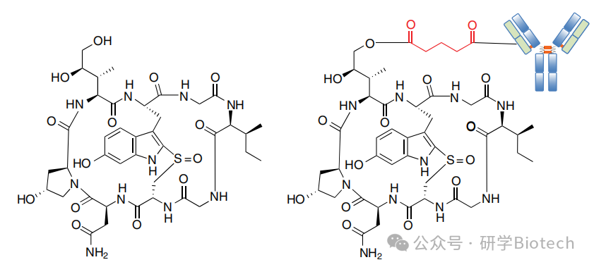 图5 α -鹅膏蕈肽与chiHEA125-ama ADC的结构