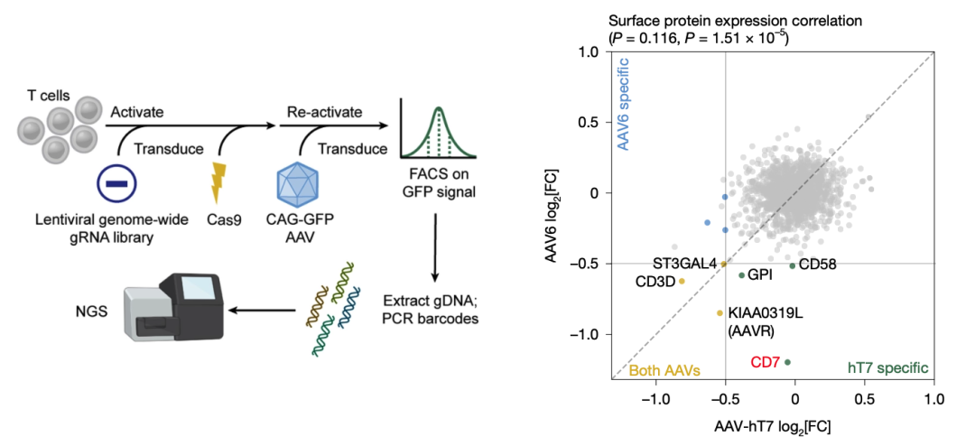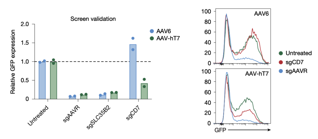 递送GFP,筛到的AAV-hT7介导T细胞表达除了依赖AAVR、SLC35B2外,还依赖CD7(分享过CD7文章CD7靶向LNP体内高效制备CAR-T)