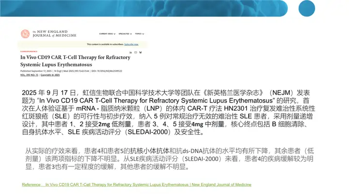 延伸阅读:石药集团:启动mRNA CAR-T治疗系统性红斑狼疮一期临床