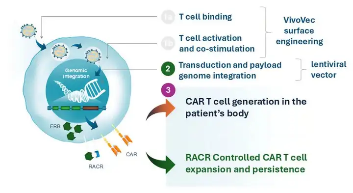 该公司与Umoja的合作利用其专有的VivoVec™平台开发用于肿瘤治疗的体内CAR-T疗法。该平台结合了第三代慢病毒载体基因递送技术和一种新型T细胞靶向激活表面复合物。VivoVec可与RACR(雷帕霉素激活的细胞因子受体)联合使用,从而有望增强VivoVec工程化免疫细胞的存活和扩增。